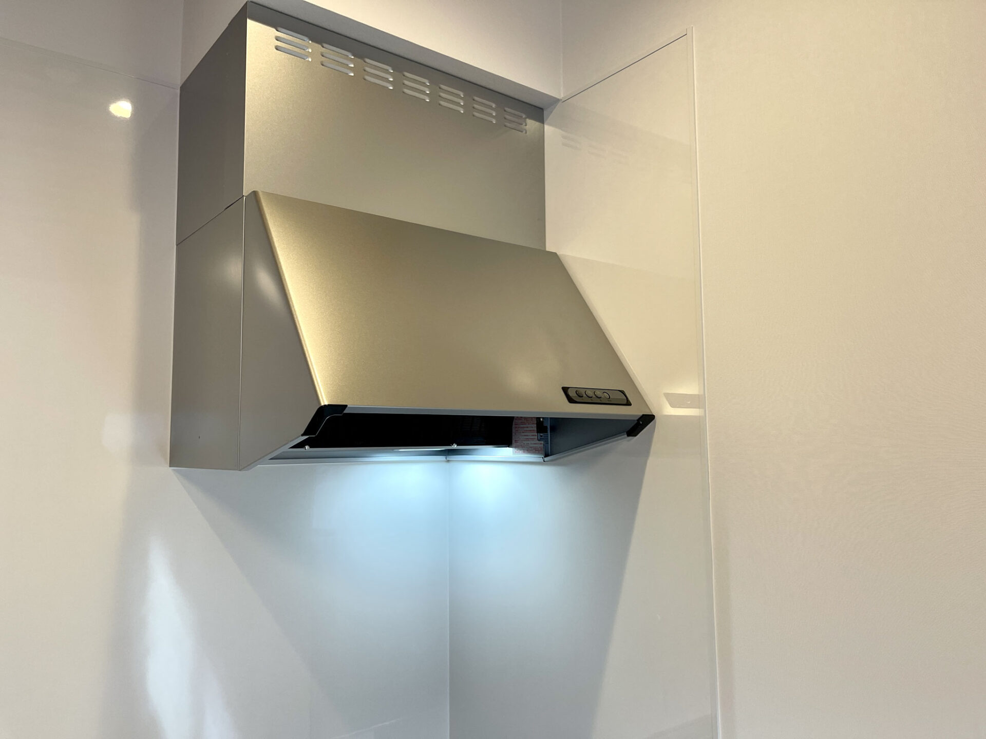水栓の隣には階段下収納もあるし、天井にある2本のライティングレールの他にもセンサー式の照明もあります。