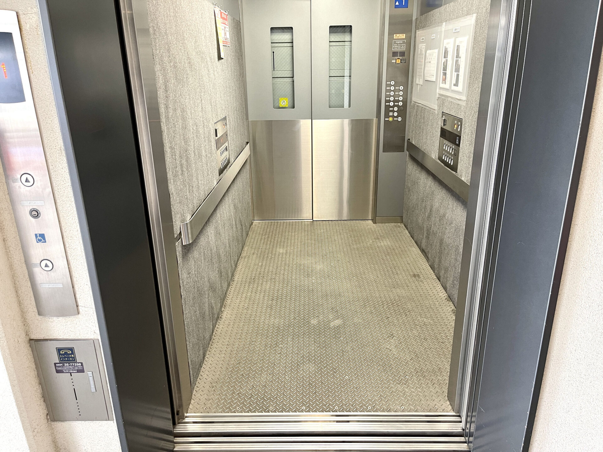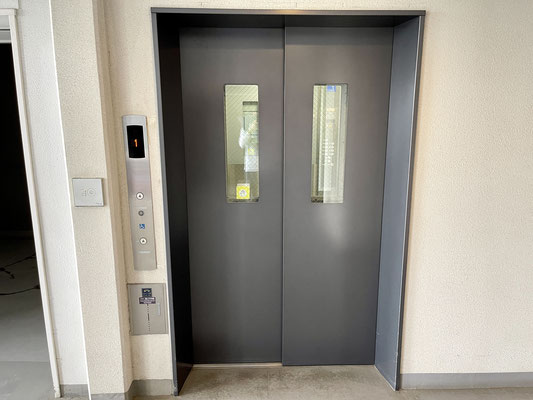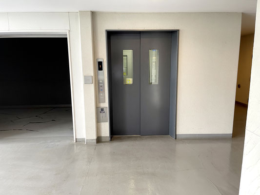 こちらの両開きのエレベーターはバイクも一緒に乗れるエレベーターです♪