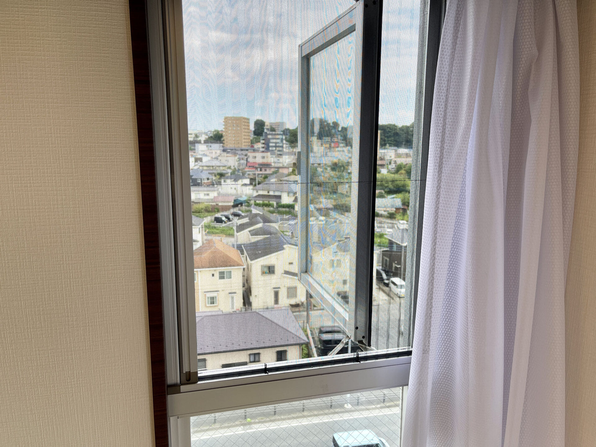壁にある小窓を開けるとそこはバルコニーに通じています。