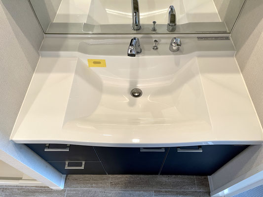 洗面台は大きな鏡、収納も多く使い勝手も良好♪