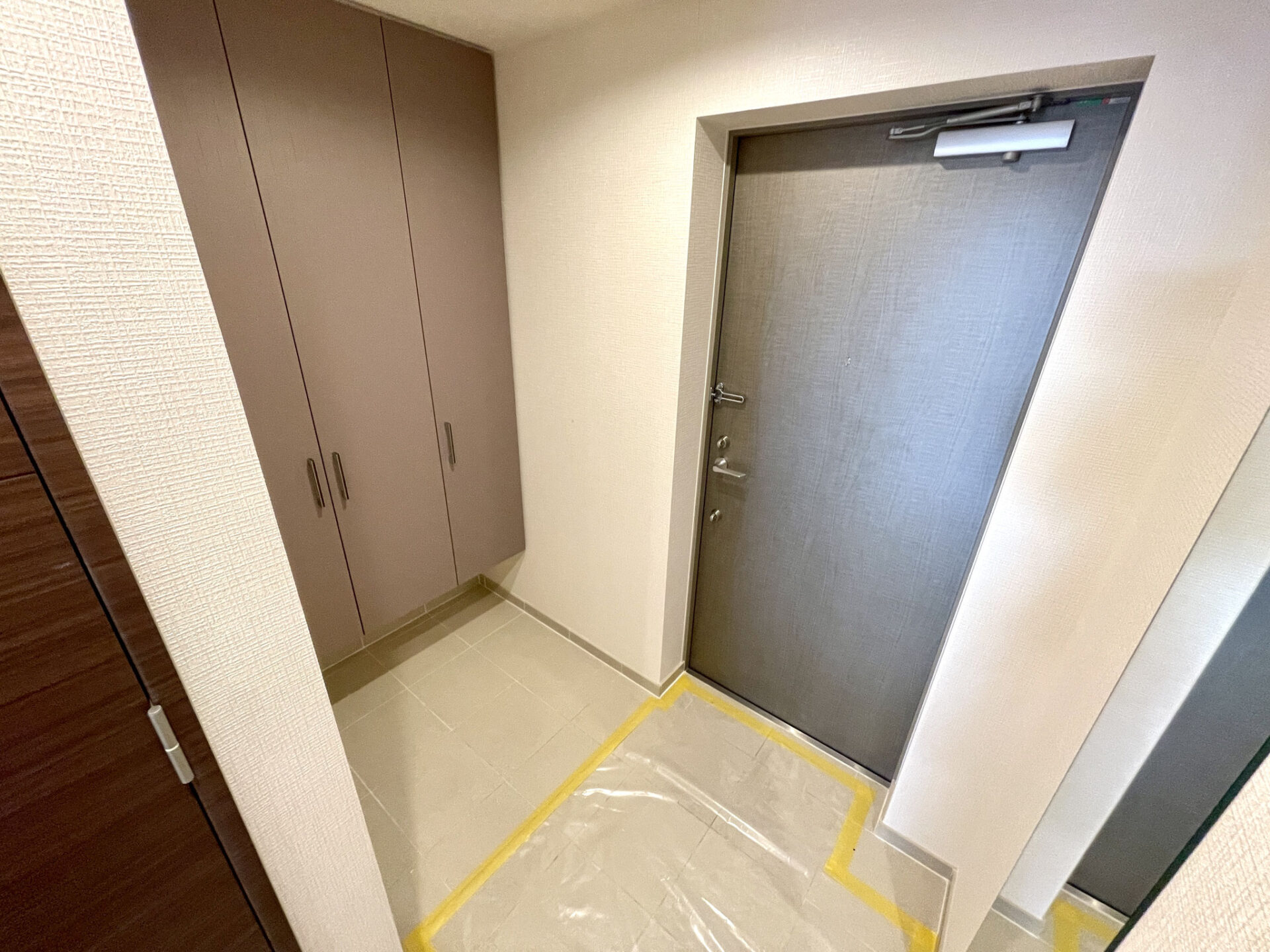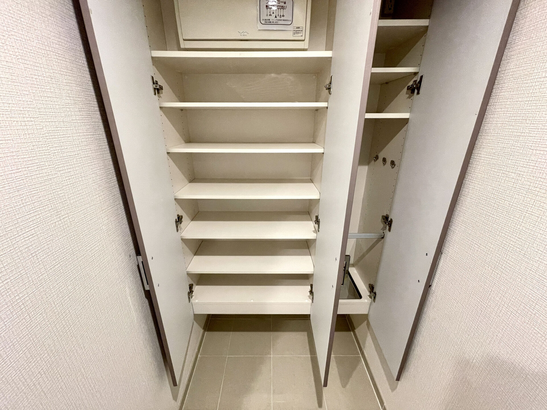 大型の下駄箱収納や姿見なんかも完備。