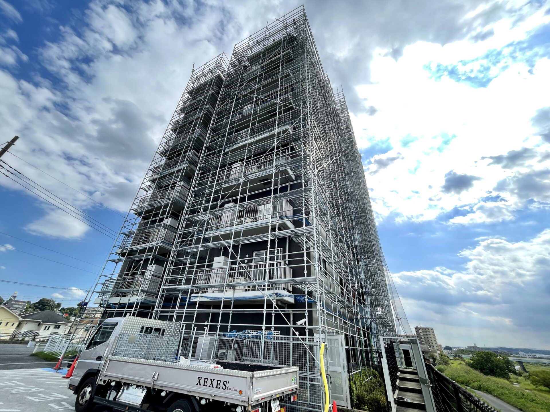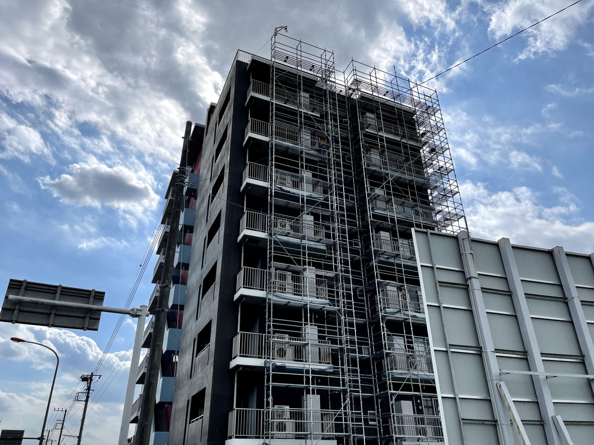 撮影時は大規模修繕工事が始まっていたので、建物側面と裏面は足場がかかっている状態でした。