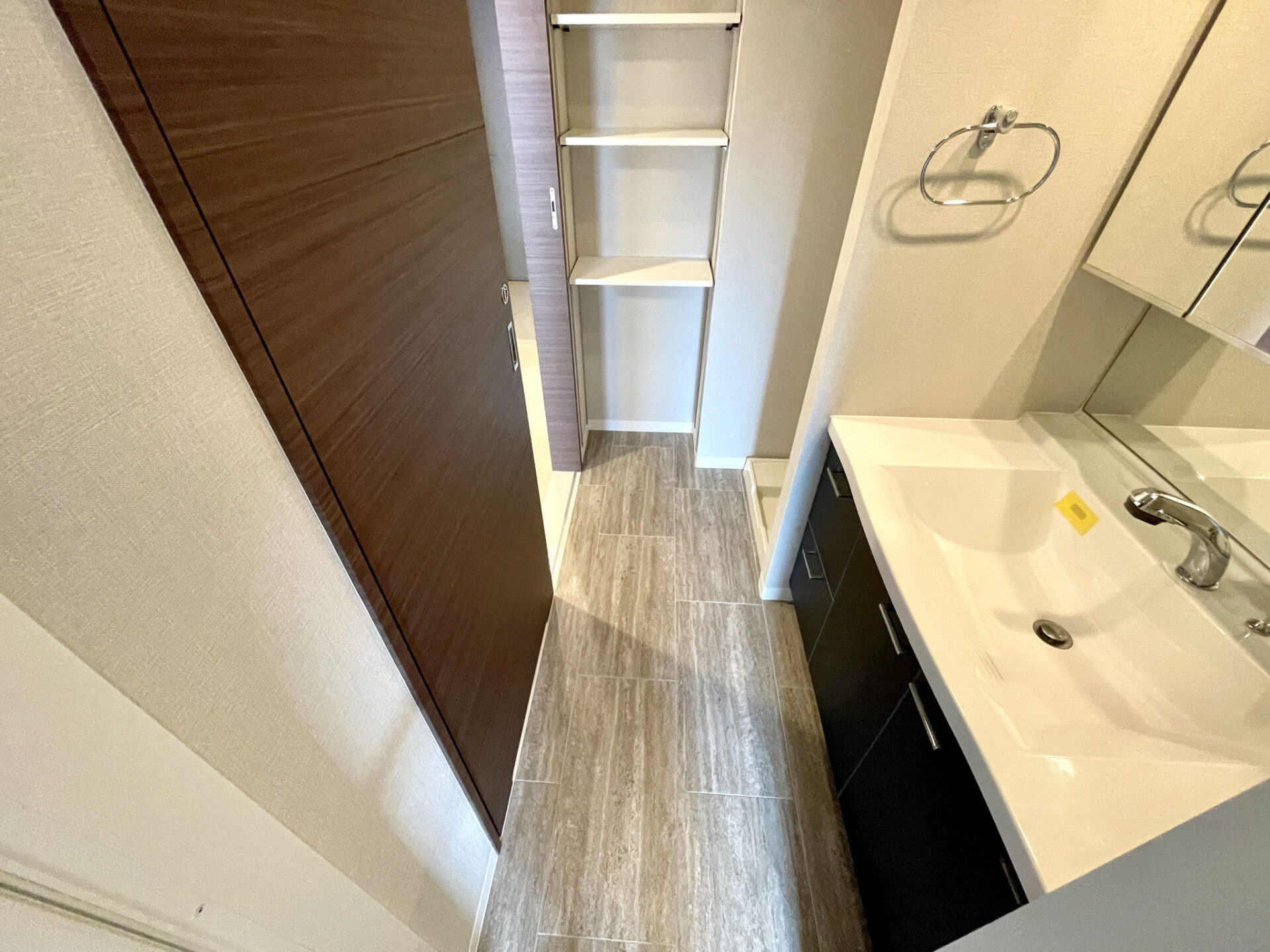 廊下に戻ってもう一つあるドアを開けると洗面台のある脱衣所。
