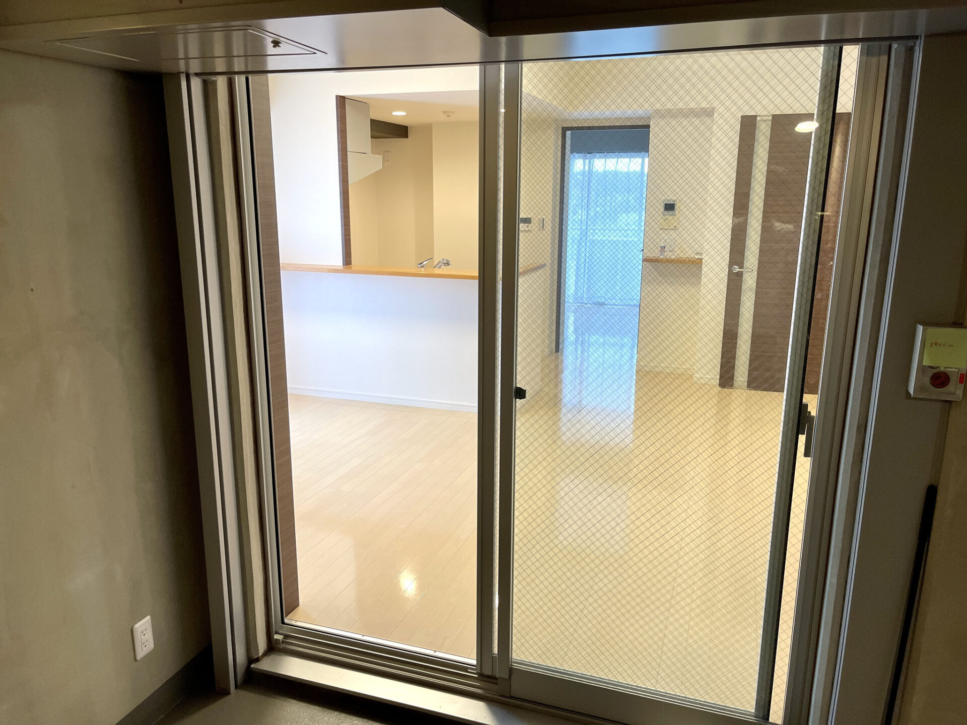リビングにあるスチールドアを開けると非常階段にアプローチ出来ます。