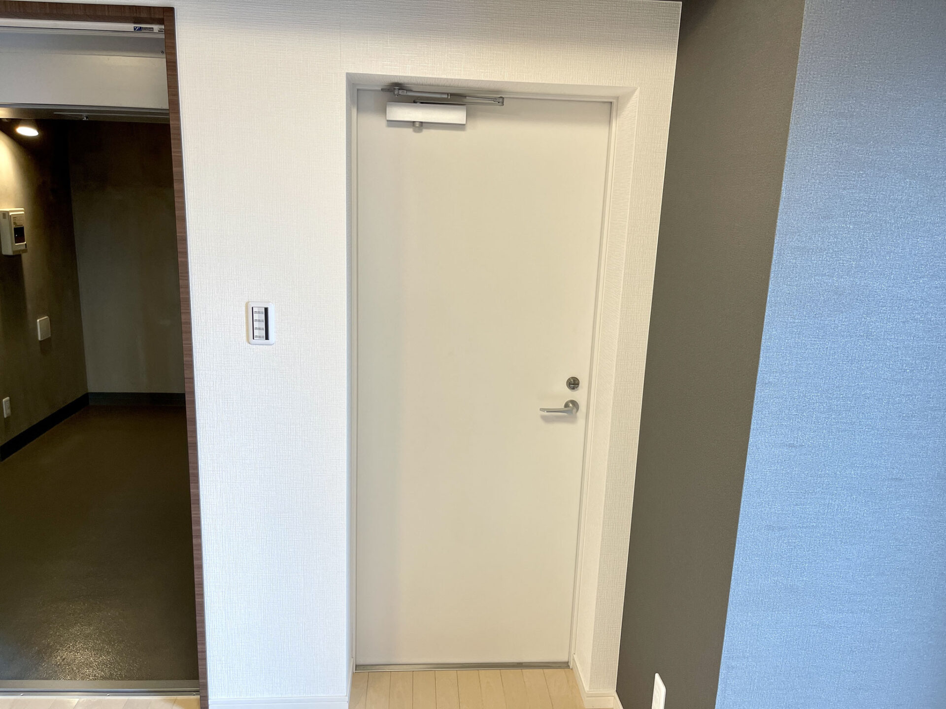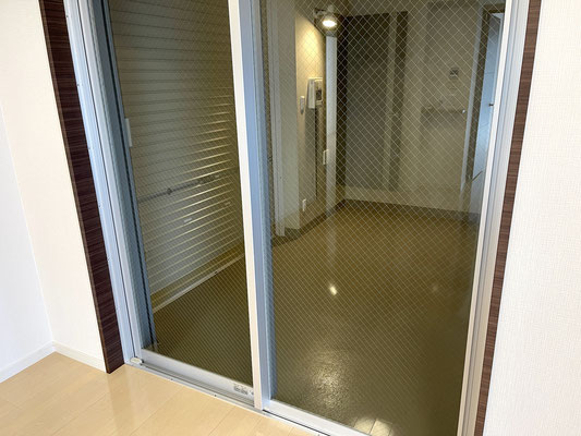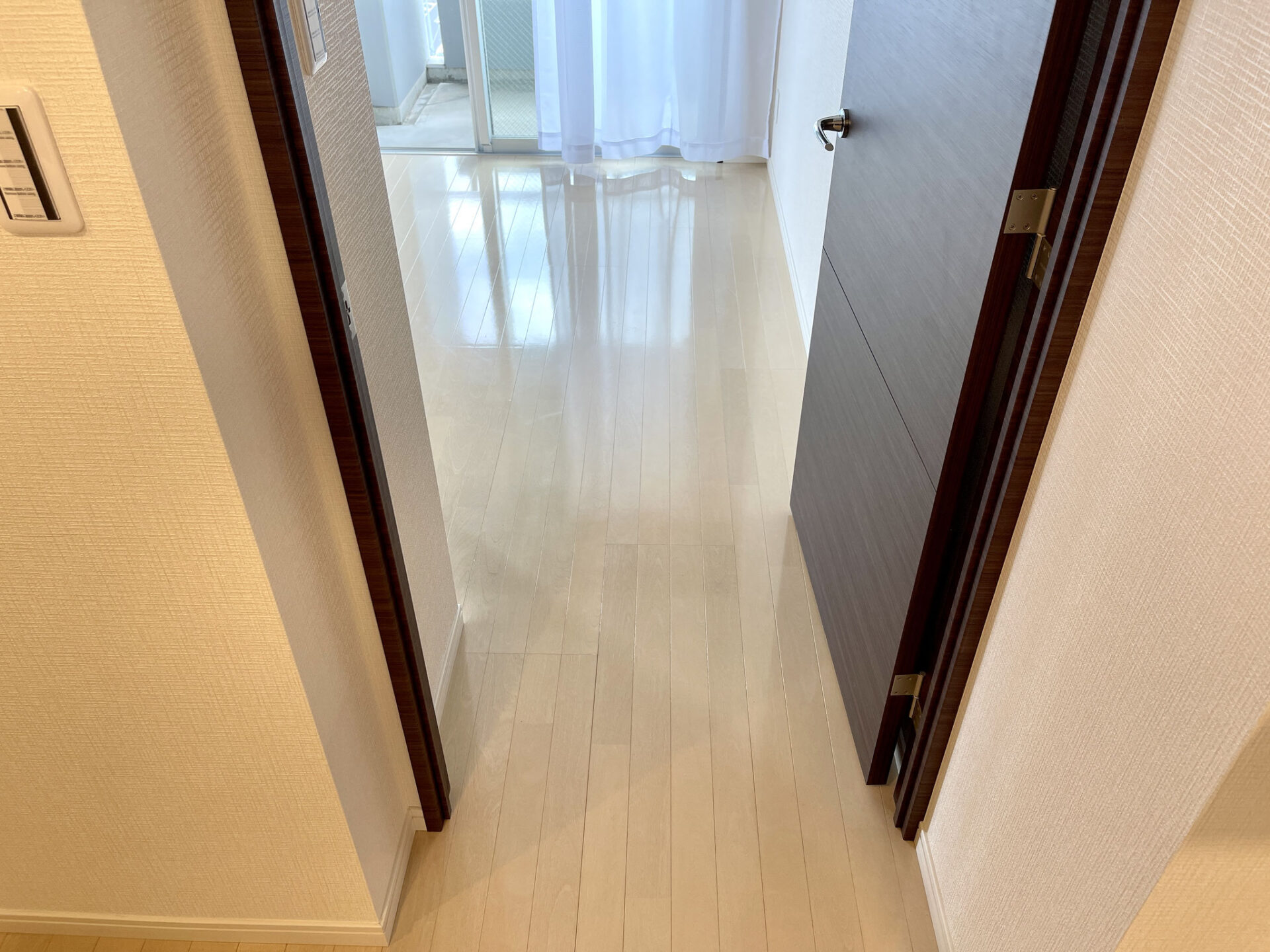 廊下の左手はスリットがオシャレなドア〜