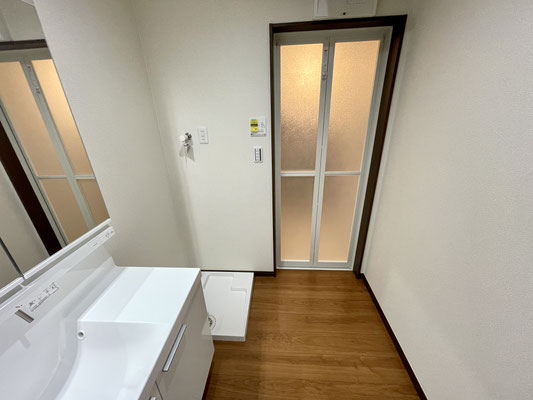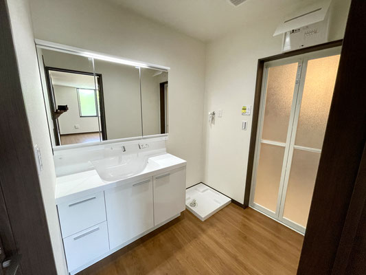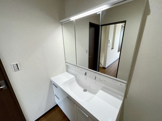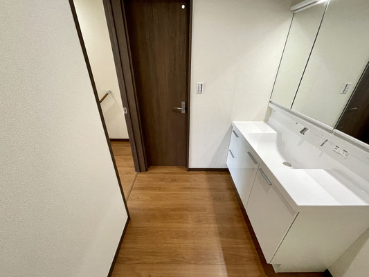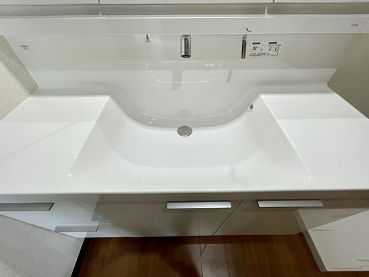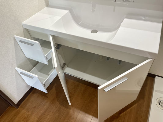 大型独立洗面台は収納もたっぷりで使いやすそうですね〜