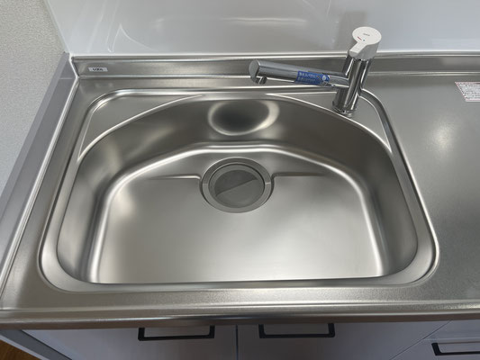 爽やかなホワイトとステンレス天板のキッチンはお手入れもしやすそうです♪