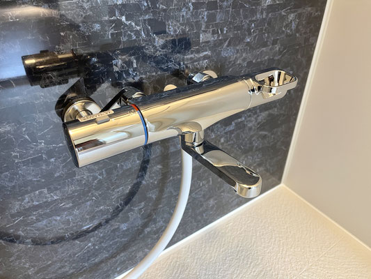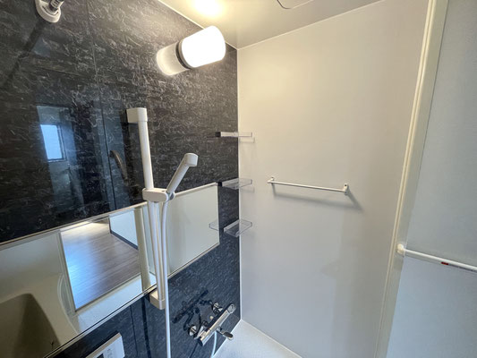 任意の位置に設定できるシャワーの掛け具も使い勝手良好です!
