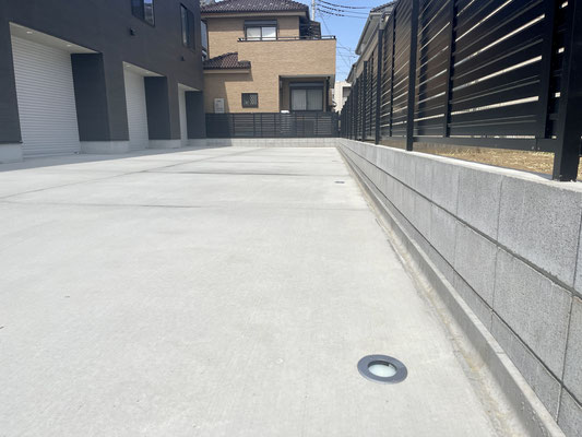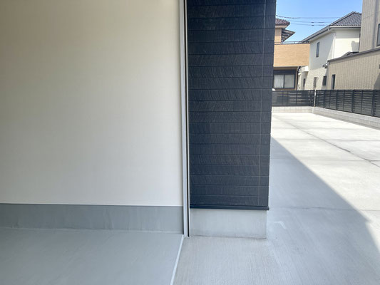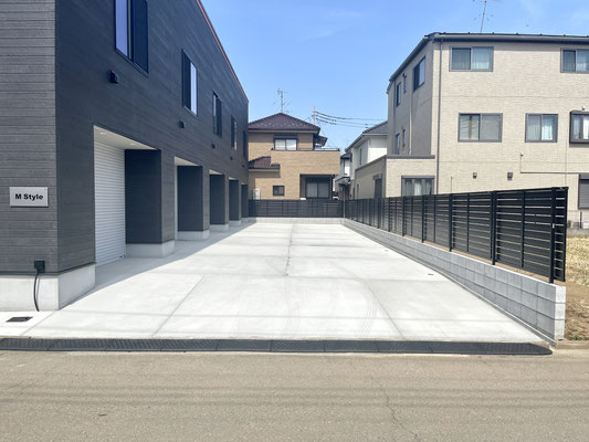 建物前面は玄関がある壁から約6.3m、シャッターからは約7.1mと広々設計なので