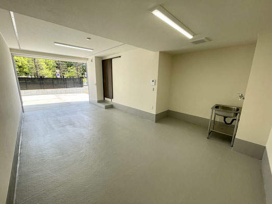 電動シャッターを開けるとガレージ内部はこんな感じ〜