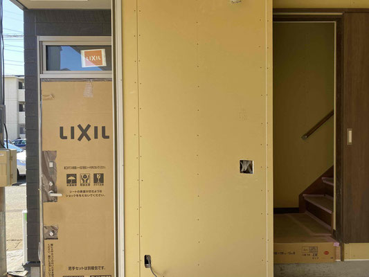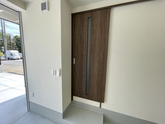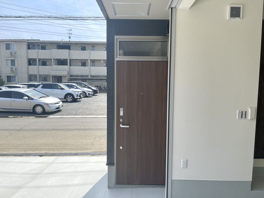ウッド調のドア上部には明り取りのFIX窓が付きます。