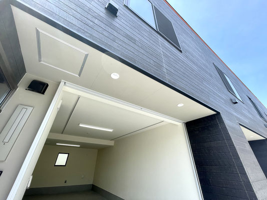 シャッター前面は大きな庇があるおかげで雨の日には大活躍でしょう♪
