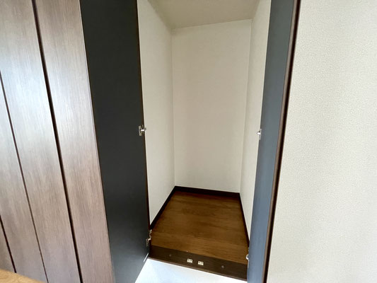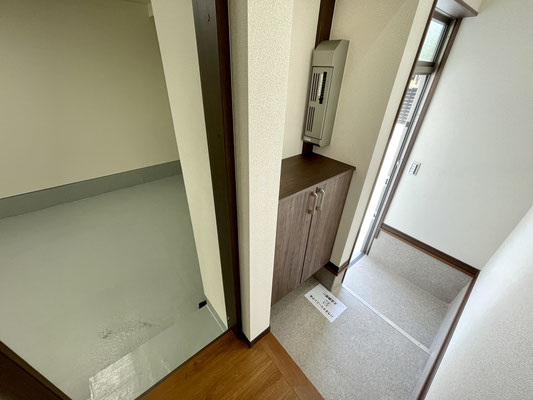 内部に入って右手には十分な大きさの下駄箱収納と埋め込まれたメールBOXがあります。