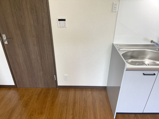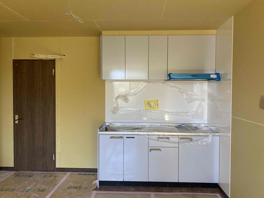 お部屋の中には使い勝手が良さそうなシステムキッチンもあります。