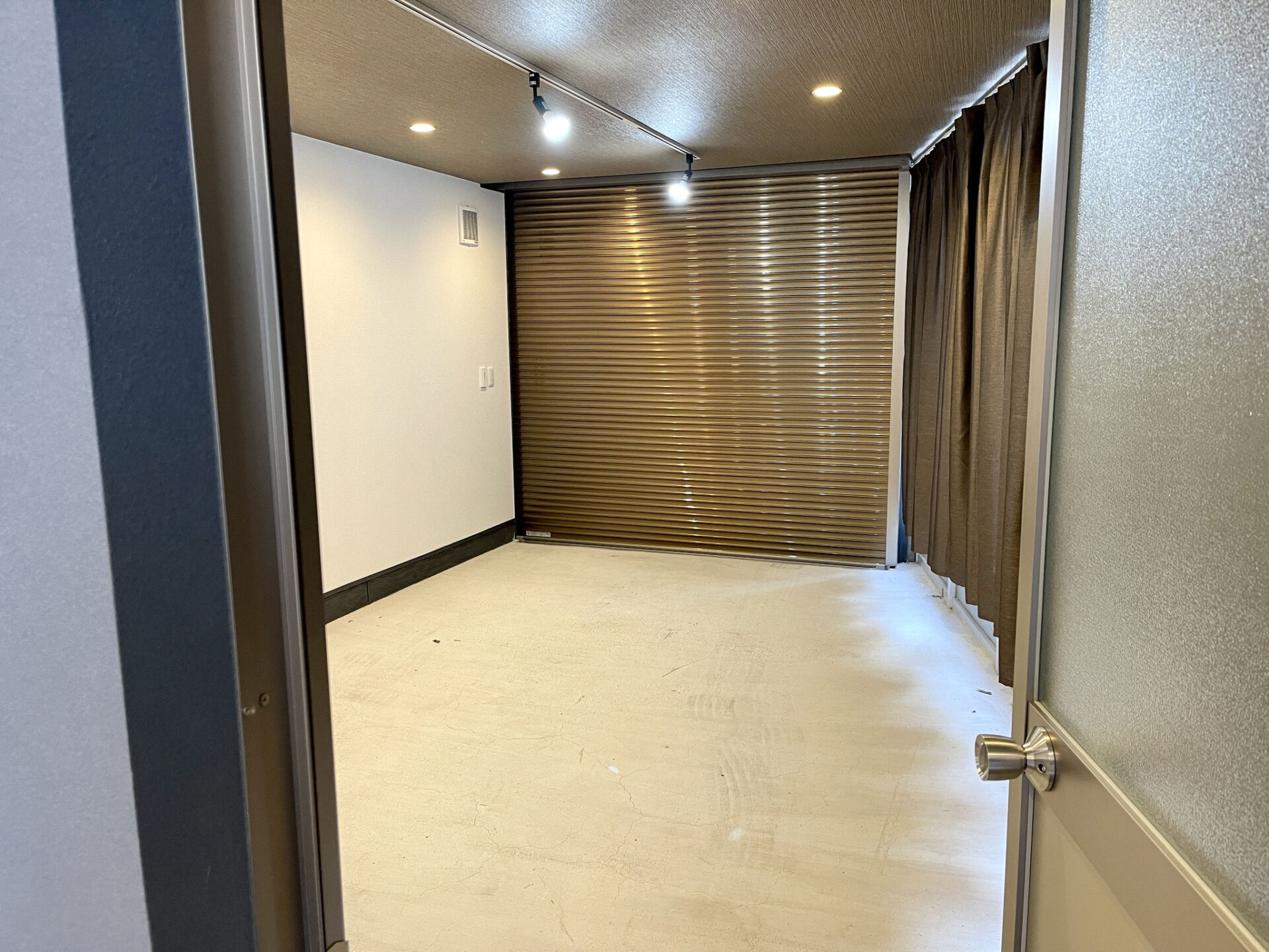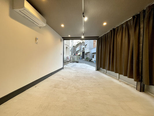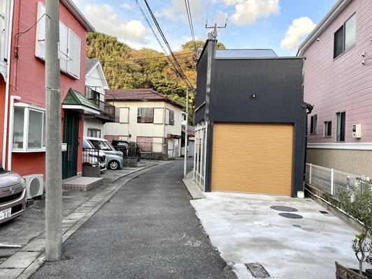 前面の道路は狭めですが、シャッター前も縦長スペースで