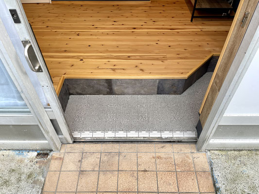 居住スペース部分の玄関はこんな感じ。