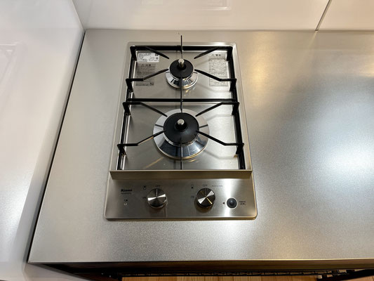 コンロは2口。料理をしながら愛車を眺められる窓。