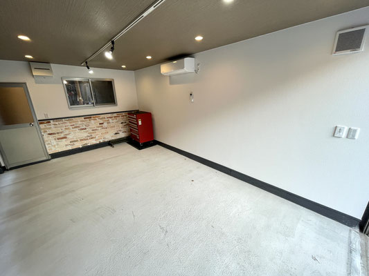 ガレージ内部は新しく土間工事をしたコンクリート床は