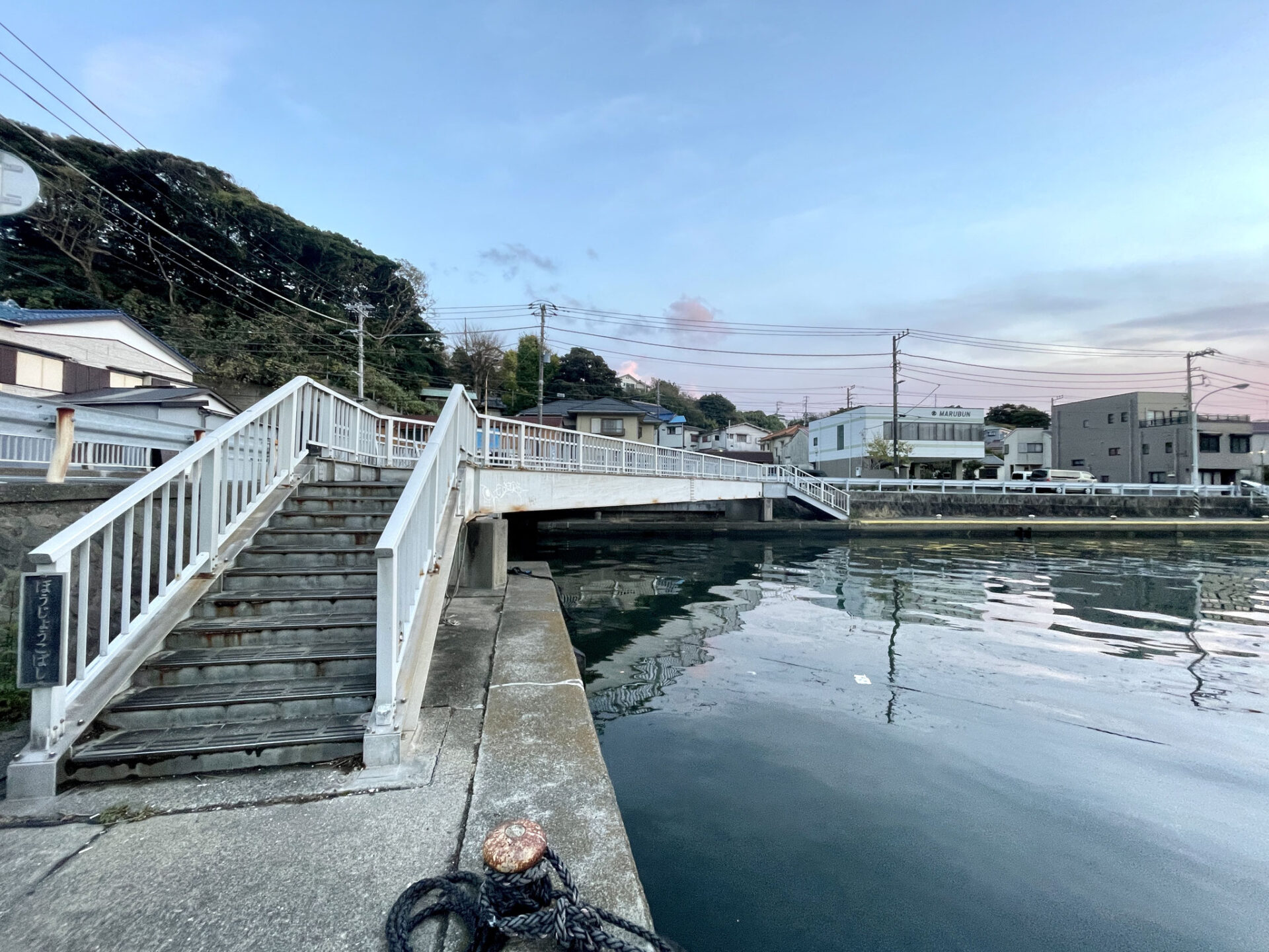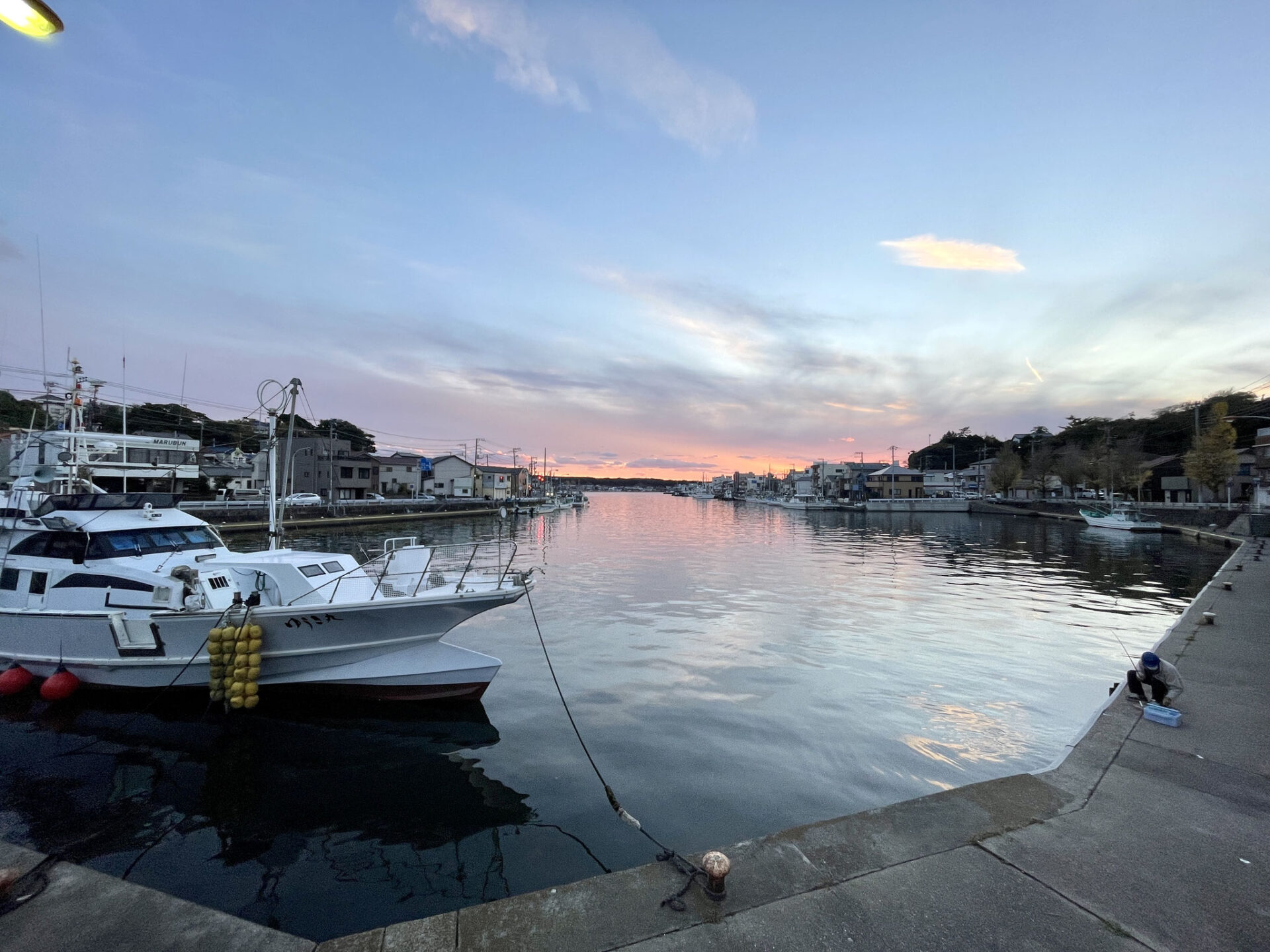 静かな港町の住宅地内で、歩いて1分のところにもう港が。