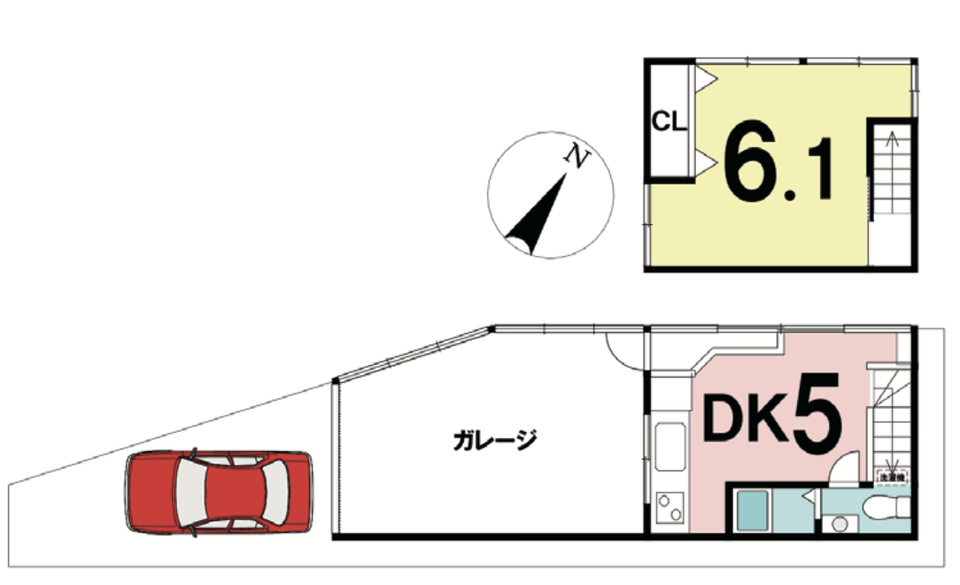 間取り: 1DK+ガレージ