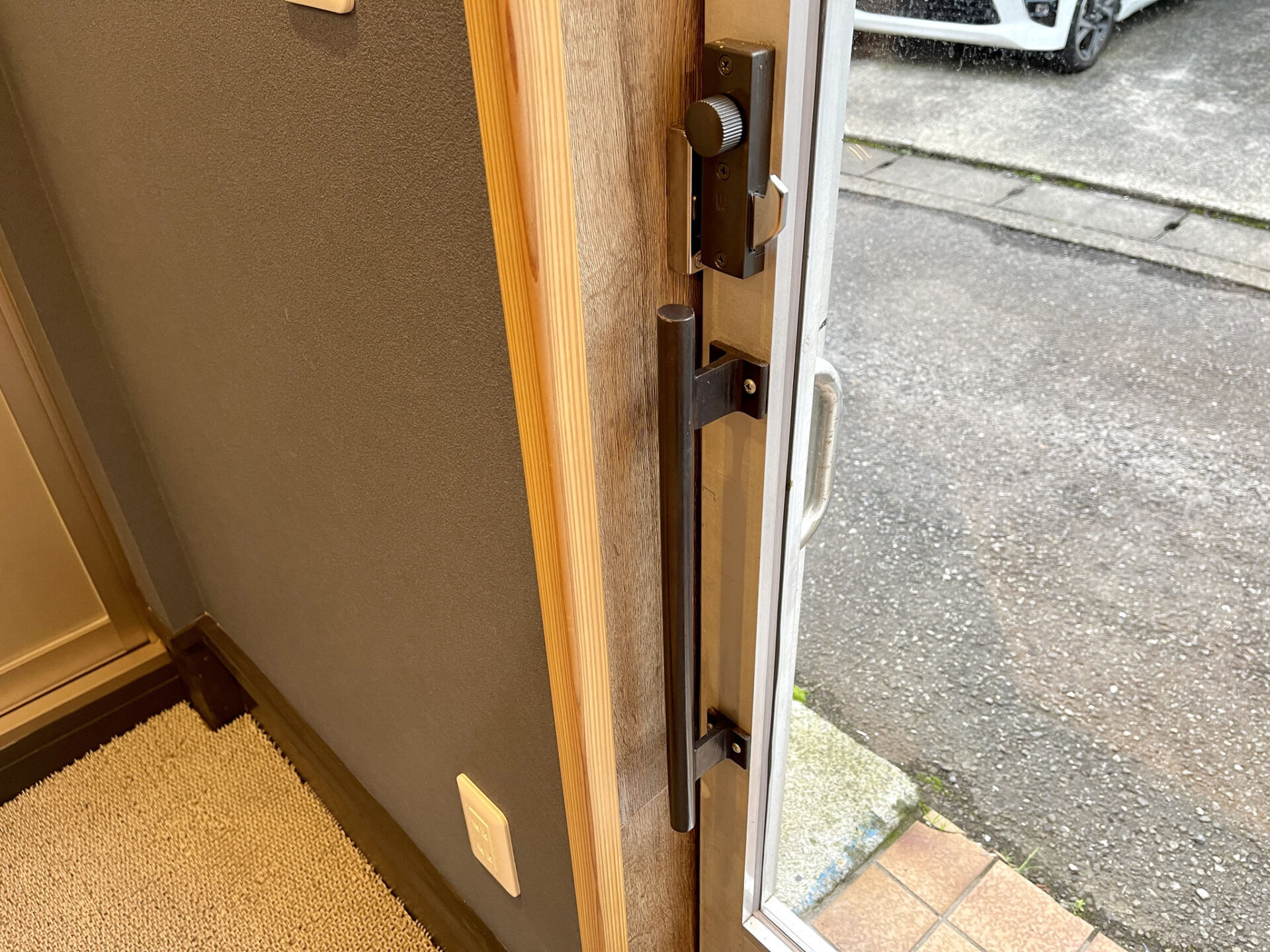そしてそれと対比を成すような明るいウッド調のシャッター。