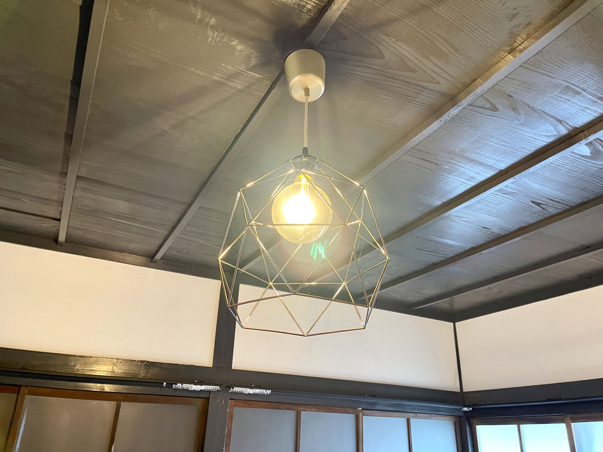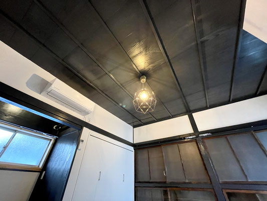 和風天井にオシャレ照明がうまくマッチしています。