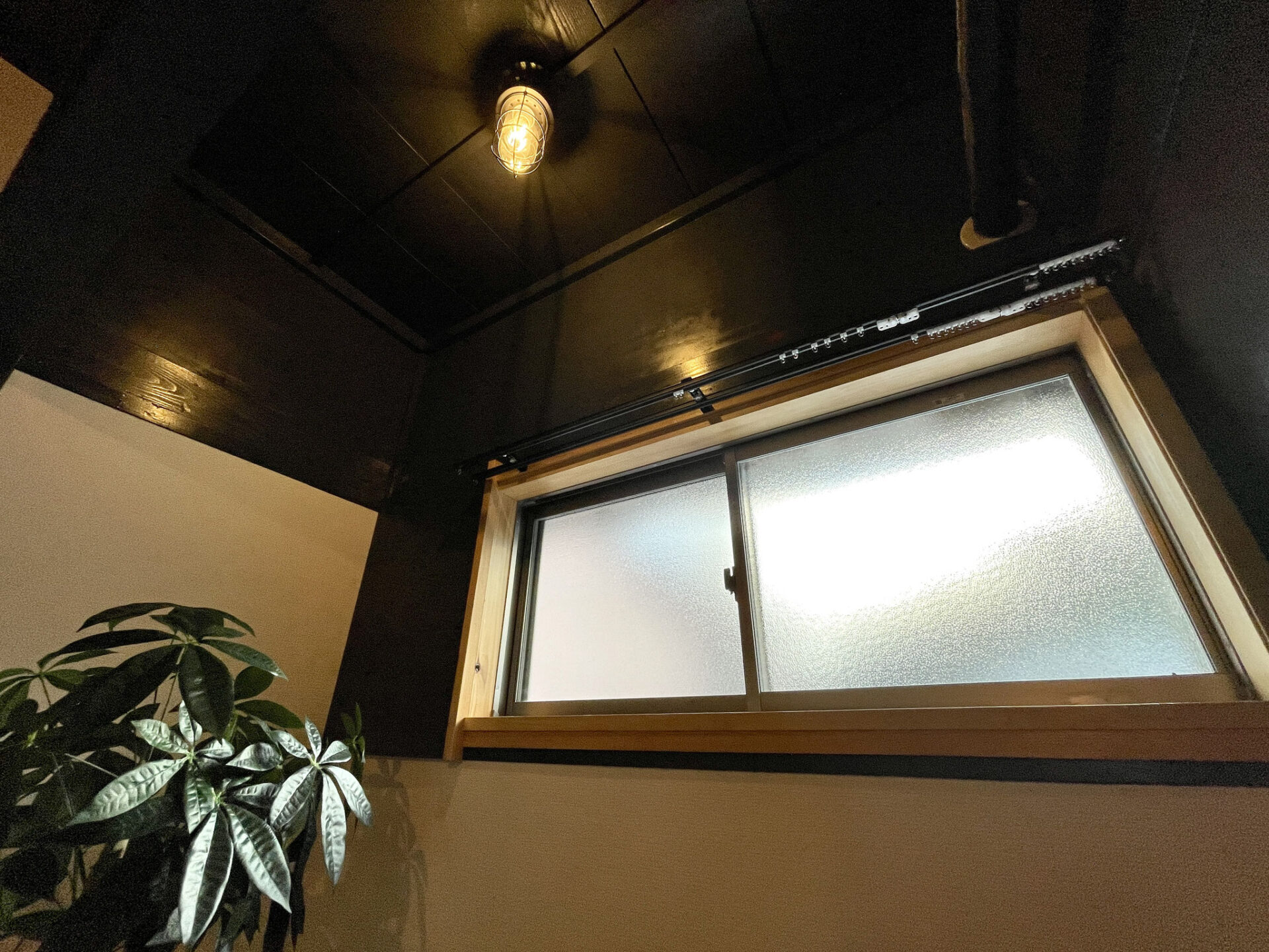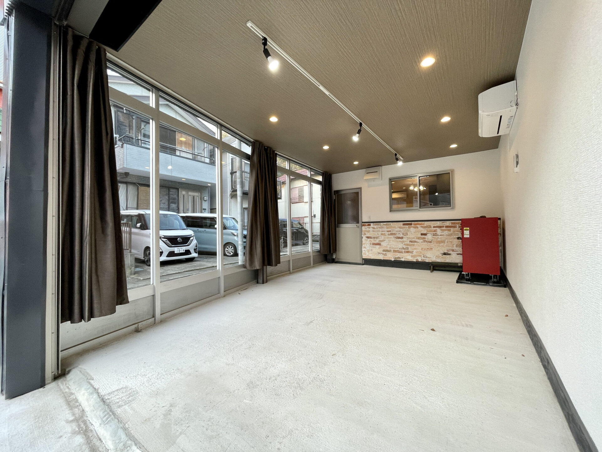 ガレージ部分の道路沿いはガラス貼りですが、通常はお好みのカーテンをつけてしまえば