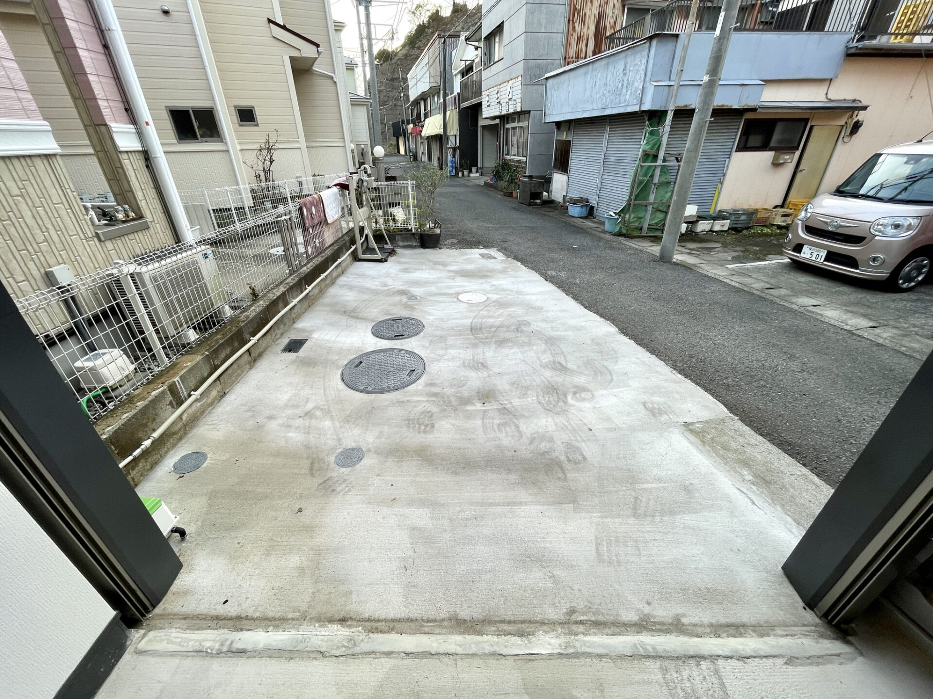 その他電源も有り、駐車スペースとの段差も小さく、車やバイクの移動もスムーズに出来ますね。