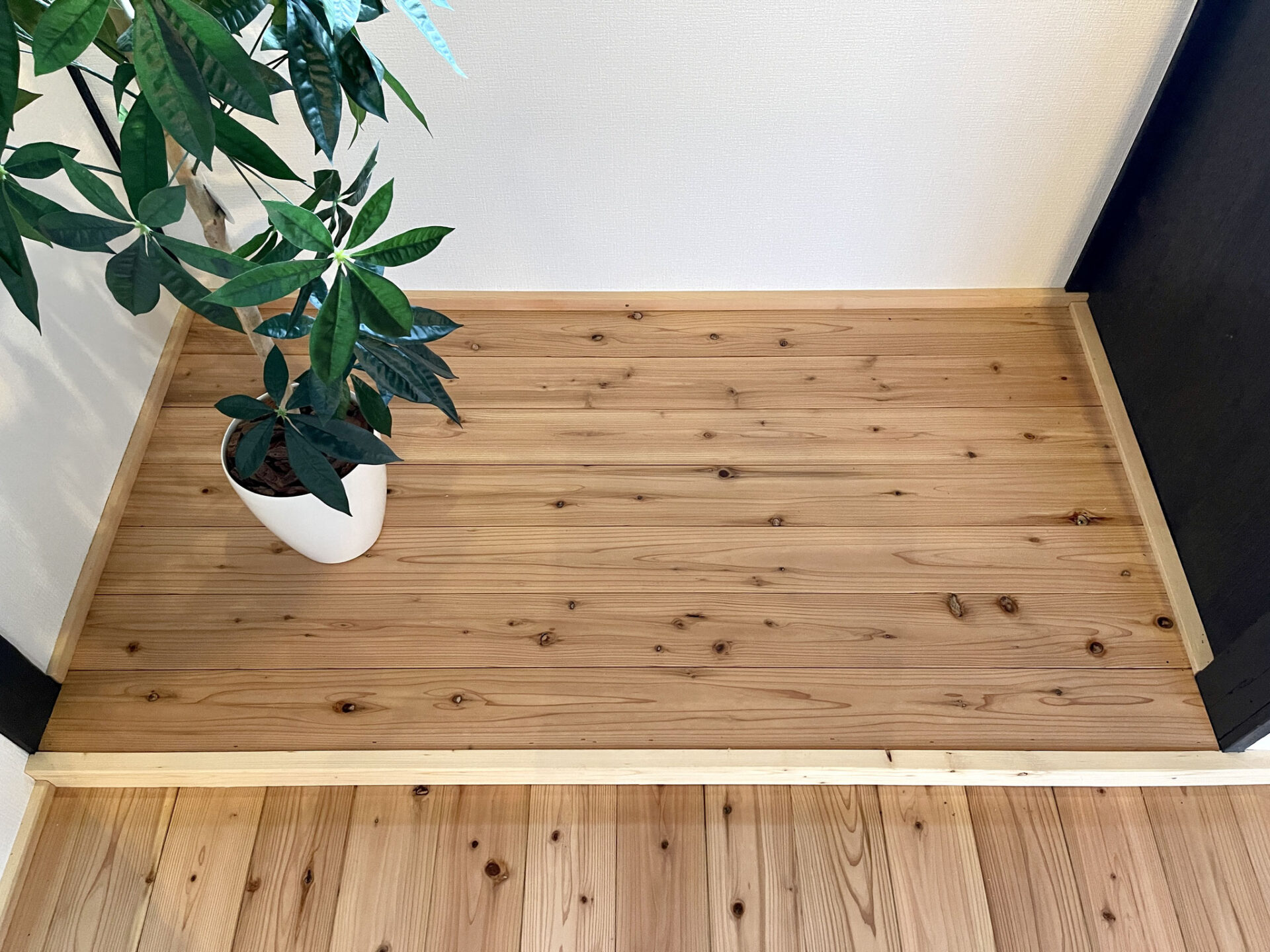 玄関の段差はやや高めですが、バイク用のブーツを履いたり釣り用のシューズ、長靴を履くには