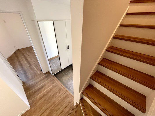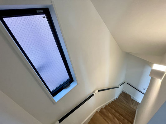 階段には窓が設けられていて、自然光が差し込む明るい雰囲気。