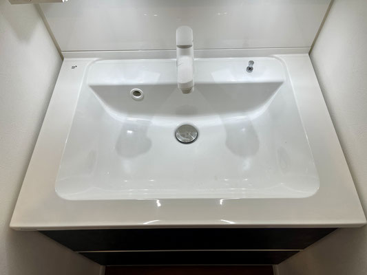 玄関ホールの正面には、手洗いに便利な洗面台があります。