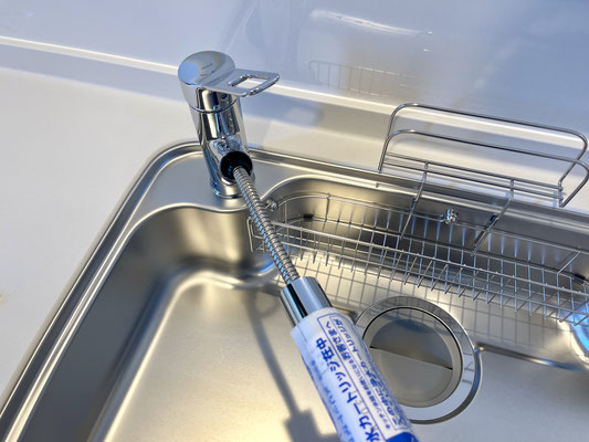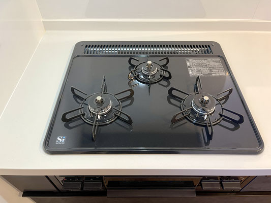 また、キッチンには毎日の料理をサポートしてくれる充実設備が満載!シャワー切り替えができる水栓と浄水カートリッジで、使い勝手も衛生面もバッチリ。広々としたシンクは、大きな鍋やフライパンもストレスなく洗えます。加えて、3口コンロで同時調理もスムーズ。魚焼きグリルも付いています。