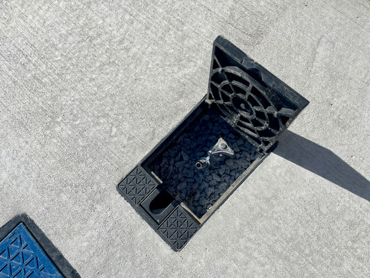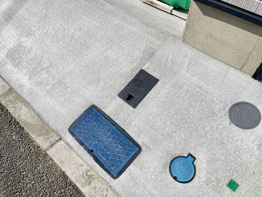 敷地内の歩道付近には緩やかな傾斜があり、、排水性も良好。