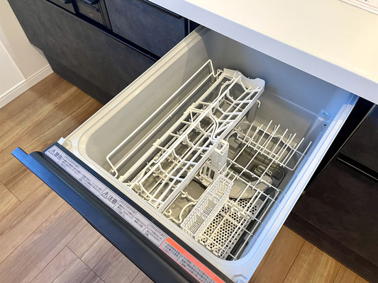 ビルトイン食洗機も完備しているので、後片付けもラクラク。作業スペースもたっぷり確保されていて、ゆったり料理に取り組めるのも嬉しいポイント。さらに、引き出し収納がたっぷり備え付けられていて、調理道具やストック品もすっきり整理できます。