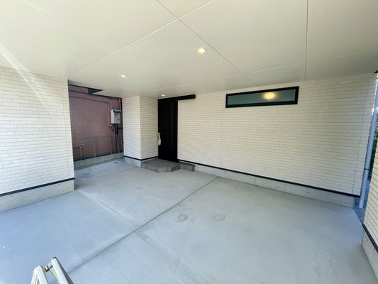 屋根付きの駐車スペースには車を並列で2台駐車可能。