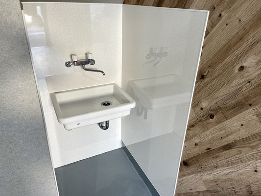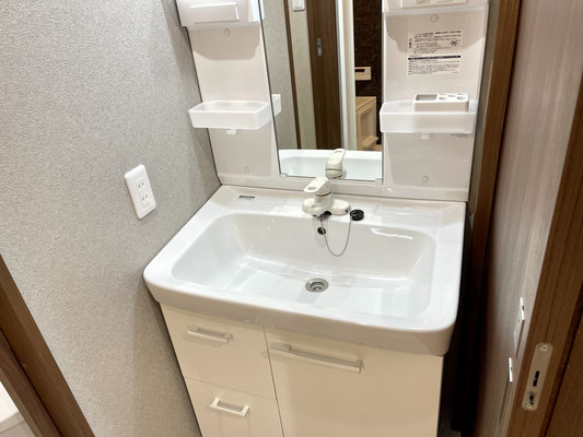 その隣の扉を開けると独立の洗面台。その奥はトイレになっています。