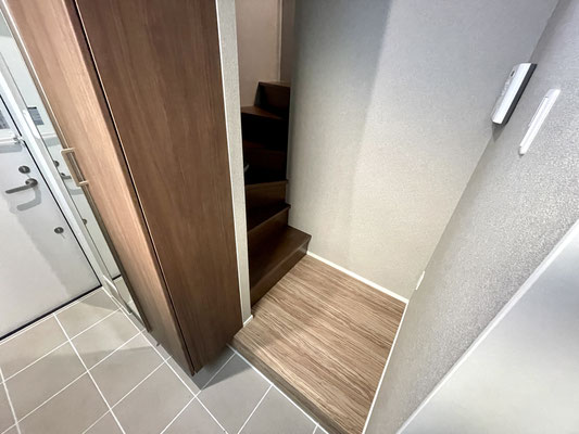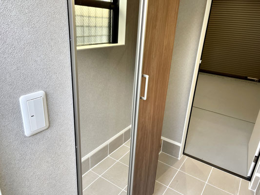 玄関を入ると左手には姿見付きの下駄箱収納。