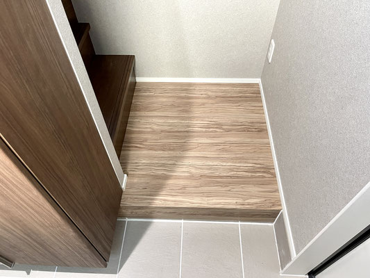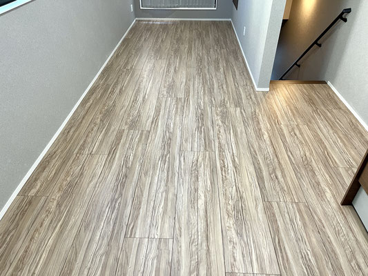 まるでフローリング床のようなセンスの良い壁材ですね♪