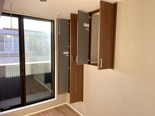 シャンパンゴールドの電動シャッターを開けると中はご覧の通り♪