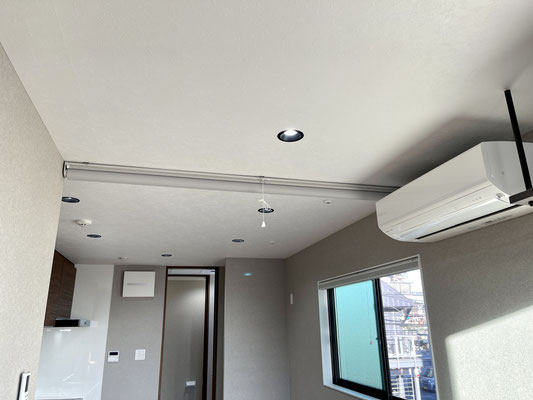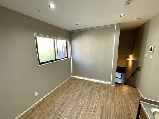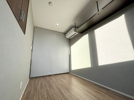 2階は1DKとはなっていますが、お部屋を仕切っているのは天井に付いたロールカーテン。