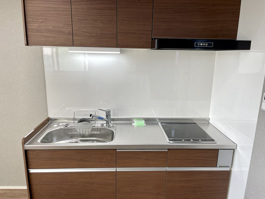ウッド調のキッチンはお部屋ともマッチしていていい具合ですね。