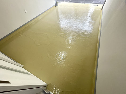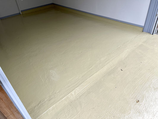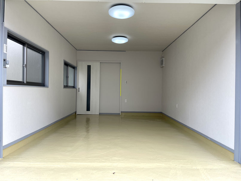爽やかなクリーム色のピカピカなガレージ床です♪