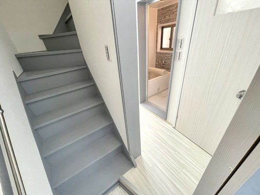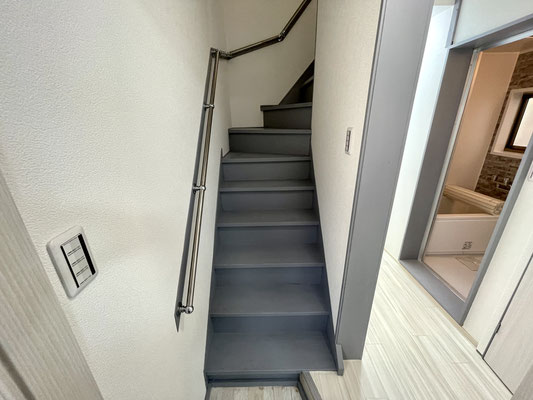 階段もグレーにペイント済で建物全体の雰囲気とマッチしています。