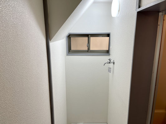入って右手は水まわりが集約。トイレとバスルーム。廊下の先端には洗濯機置場もあります。