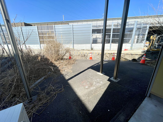 反対側のシャッターを開けるとちょっとしたスペースになっています。