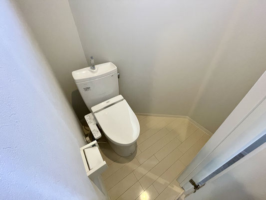 珍しい形のトイレなので、奥に棚等を置いてお気に入りの物を飾ったりしてもいいですね。
