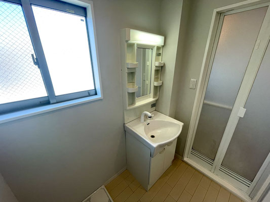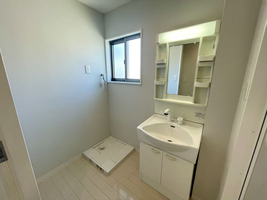 洗面台、洗濯機置場、脱衣所が揃っているので使い勝手が良さそう。