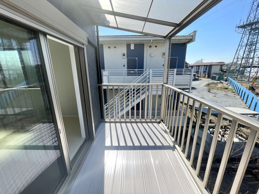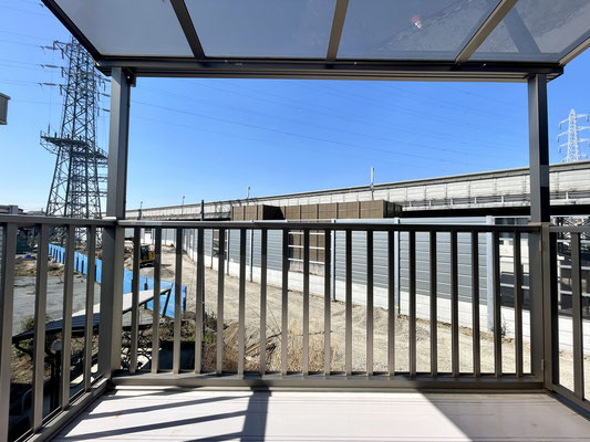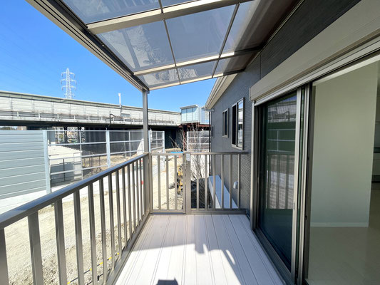 バルコニーは広々としていて、屋根が付いているので急な雨でも安心です。