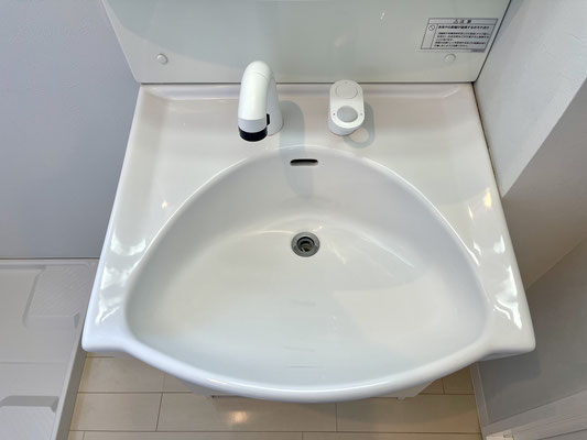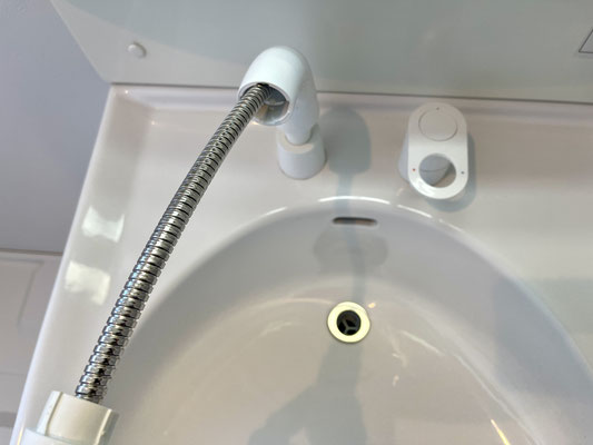 洗面台は収納付きで、蛇口は伸びる&シャワー切り替えタイプ。