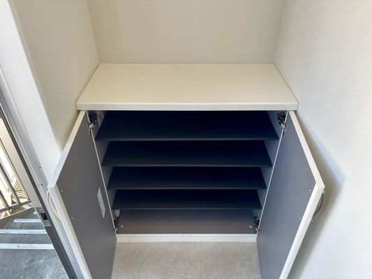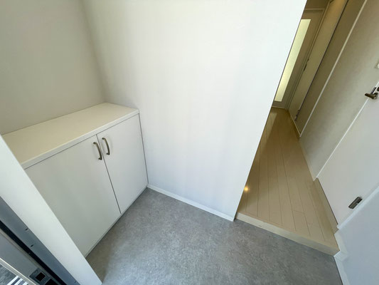階段を上り、2階の玄関を開けると左側に下駄箱収納があります。
